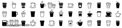 Coffee cup big icon set. Coffee, tea, drinks, cocoa, cup, cafe and more. Tea cup illustration sign. Linear coffee cup icons. Various cups of coffee. Vector illustration
