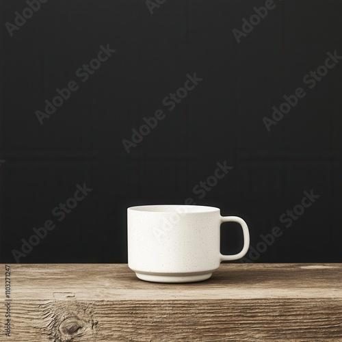 Coffee cup mockup. Minimalist white coffee cup on wooden table