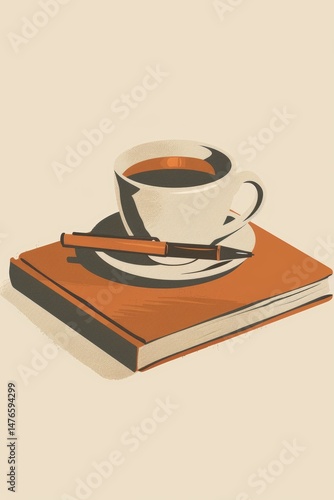 Coffee Cup, Pen and Book Still Life