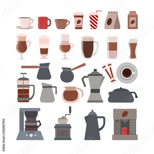 hot drink, set, vector, icon, cup, latte, mug, drink, hot, beverage, cafes, espresso, cappuccino, mocha, isolated, design, illustration, flat, black, background, white, shop, icon, tea, sweet, eatery, milk, breakfast, morning, heat, sugar, menu, caffeine, disposable, grinder, ground, macchiato, modern, style, machine, happy, decoration, business, food, graphic, natural, shape, retro