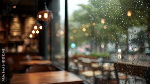cafes, window, raindrop, interior, view, wet, rainy, drop, water, liquid, blurred, blurry, photo, background, glasses, pane, light, bokeh, cosy, comfort, relaxation, leisure, peaceful, calm, mood, autumn, winter, season, cold, warm, window sill, table, chair, furniture, empty, cafes, eatery, bar, indoor, urban, city, street, outside, atmosphere, weather
