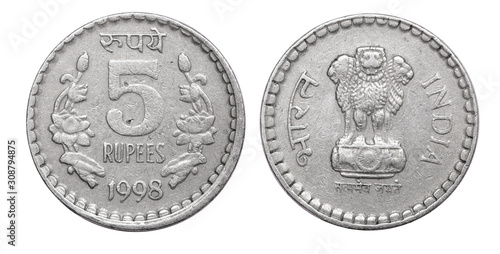 Coin 5 rupee. India. 1998