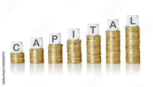 money, capital, investment, equity, asset, funding, finance, resource, wealth, liquidity, reserve, stack, white background, coin, dice, letter, stacked, tower, coin, euro, symbol, word, font, text, rising, increase, upwards, concept, pile, ascending, growth, business, currency, isolated, cash, banking, financial, progress, improvement, grow, cost, bank