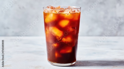 Cold brew coffee in glass. Refreshing iced drink for summer mornings and coffee lovers.
