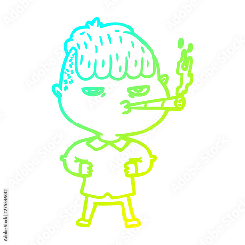 cold gradient line drawing cartoon man smoking