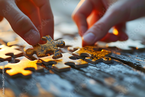 puzzle, collaboration, hand, wooden table, afternoon, sunlight, gathering, leisure, teamwork, completion, sharpened, creativity, entertainment, challenge, enjoyment, relaxation, skill, interaction, strategy, tactile, pattern, decor, warmth, connection, engagement, game, fun, friends, family, task, design, craftsmanship, concentration, joy, sunlit, closeup, community, assembly, pastime, cooperative, exploration