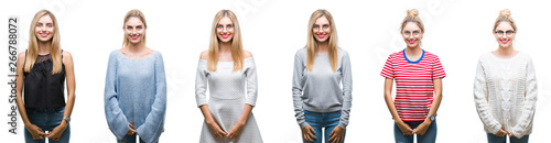 Collage of young beautiful blonde woman over isolated background with a happy and cool smile on face. Lucky person.