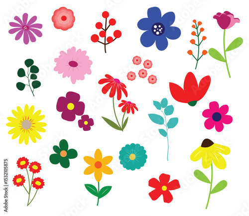 Collection colorful flower clip art elements vector. Flower spring drawing clipart set. Hand drawn blossom illustration collection, Set floral of wildflower, leaf branch,or decor, easter, sticker