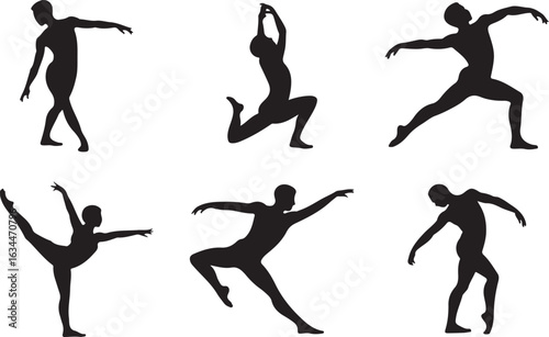 Collection of black dancer silhouettes in various expressive performance poses