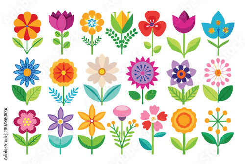 flower, flower, bloom, blossom, floral, spring, summer, nature, botanical, garden, plant, plant, green, leaf, leaf, colourful, vibrant, bright, happy, cheerful, joyful, design, illustration, graphic, art, flat, style, set, collection, isolated, white, background, simple
