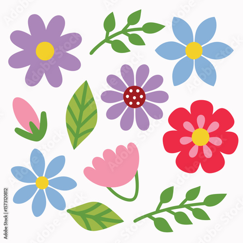 Collection of colorful floral shapes and leaves . Set of flowers icon.