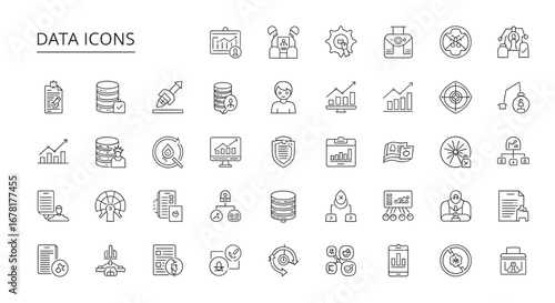 Collection of data symbols representing information management and analysis with a clean and modern aesthetic.