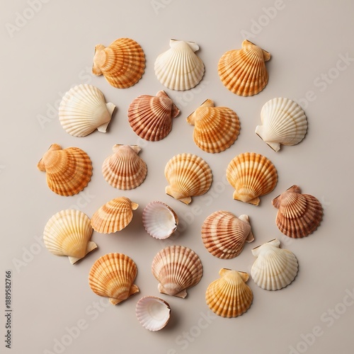 Collection of Delicate Seashells Arranged in a Circular Pattern Overhead