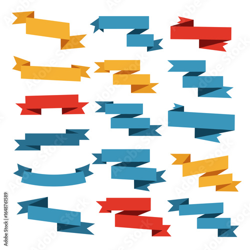 Collection of flat design colorful ribbon banners and labels for various design projects and presentations