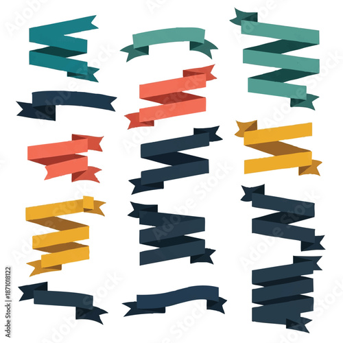 ribbon, banner, flat, design, graphic, element, vector, illustration, set, collection, template, label, tags, badge, header, title, text, decoration, ornament, shape, style, modern, simple, clean, minimalist, abstract, geometric, layout, web, print, marketing, promotion, sale, discount, offer, announcement, news, information, communication, presentation, background, empty, blank, copy, space, colourful, blue, teal, green