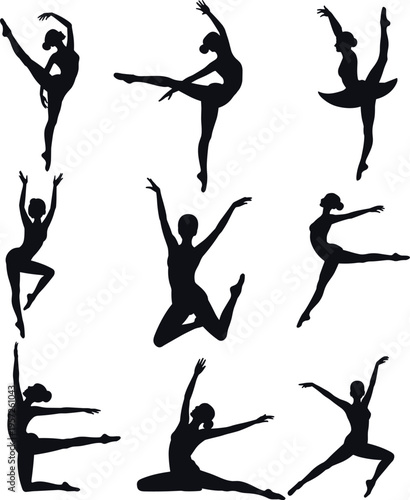 Collection of Graceful Ballerina Silhouettes in Elegant Dance Poses Performance Art and Classical Ballet Movements Isolated on White Background for Professional Creative Design Projects