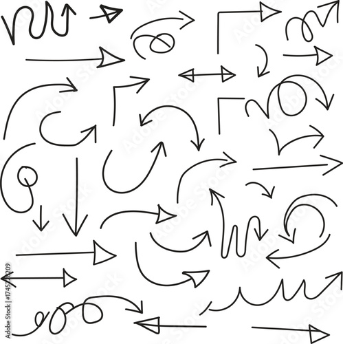 arrow, arrow, hand-drawn, doodle, vignetting, illustration, vector, design, element, icon, symbol, direction, pointer, navigation, movement, next, previous, up, down, left, right, curved, straight, wavy, spiral, loop, corner, turn, set, collection, group, isolated, white background, simple, basic, outline, line art, graphic, creative, abstract, concept, information, communication, choice, progress, alphabet, font