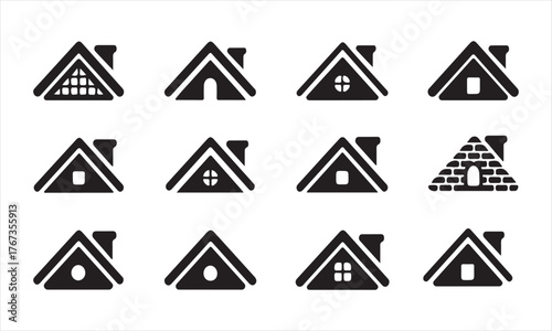 Collection of house roof icons isolated on white background for real estate