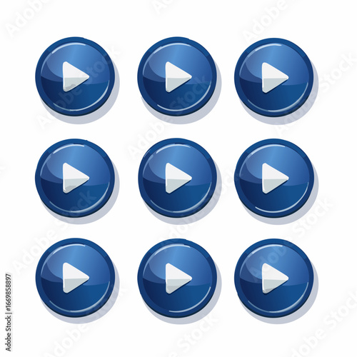 Collection of Navy Blue Game Control Buttons, User Interface Elements, Modern Design, Isolated on White Background.