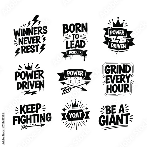 Collection of nine black and white motivational graphic word statements motivational svg bundle design
