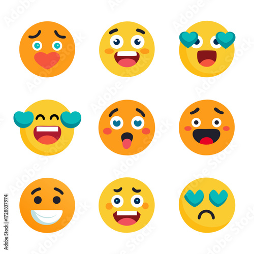 emoticon, face, expression, happy, sad, love, surprised, smiling, cartoon, graphic, isolated, yellow, orange, round, icon, symbol, emotion, feeling, fun, playful, joyful, excited, delighted, cheerful, animation, avatar, character, comical, whimsical, design, web, communication, message, cyberspace, digital, cute, adorable