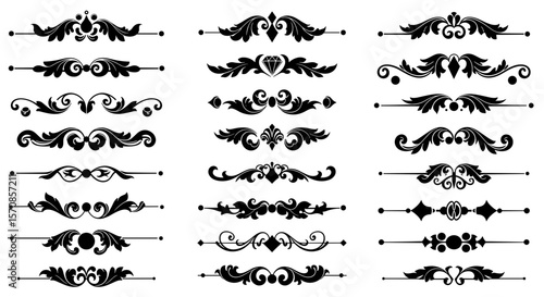 ornament, divider, flourish, line, separator, vector, design element, decorative, vintage, retro, antique, scroll, swirl, victorian, baroque, elegant, filigree, frame, border, typography, graphic, illustration, isolated, set, collection, black, white, decoration, headline, footer, design, template, book, invitation, certificate, calligraphy, engraving, etching, symmetry, classic, royals, heraldic, creative, element, ornate