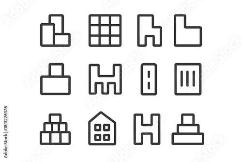 Collection of simple outline geometric shapes and abstract modular structures for design projects