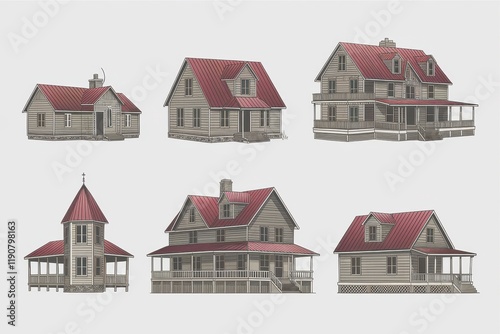 Collection of Six Architectural House Designs with Red Roofs