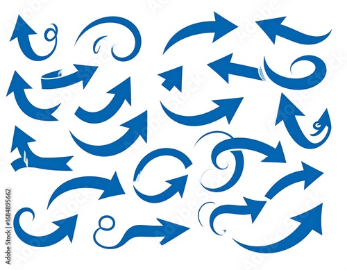 Collection of stylized blue arrows on white
