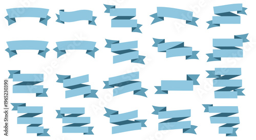 ribbon, banner, blue, design, decoration, collection, set, various, shape, style, ornament, element, graphic, template, label, tags, badge, vector, illustration, isolated, background, white, light, colours, decorative, creative, modern, elegant, simple, flat, minimal, clean, stylish, trendy, abstract, geometric, curve, wave, fold, edge