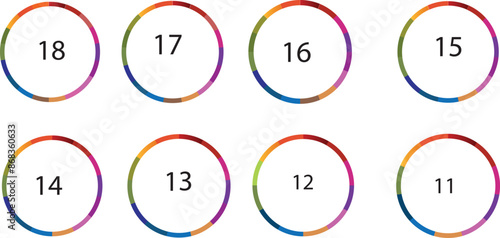 Collection of vector circle chart infographic templates for presentations, advertising, layouts, annual reports.18,17,16,15,14,13,12,11