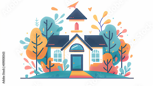 school, building, graduation, background, concept, campus, schoolhouse, institution, college, vector, illustration, education, academic, learning, study, architecture, university, structure, design, graphic, art, drawing, vignetting, cartoon, symbol, icon, emblem, signage, signs, blueprint, layout, plan, draft, creativity, idea, imagination, style, visual, decorative, artistic, colourful, bright, vibrant, playful, modern, contemporary, detailed, intricate, complex