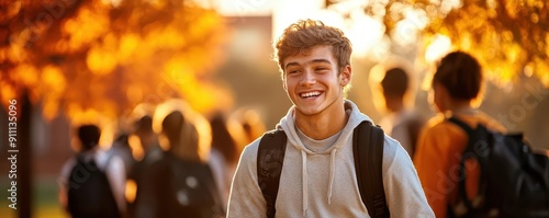 College campus life, vibrant colors, joyful scenes, dynamic action, inviting
