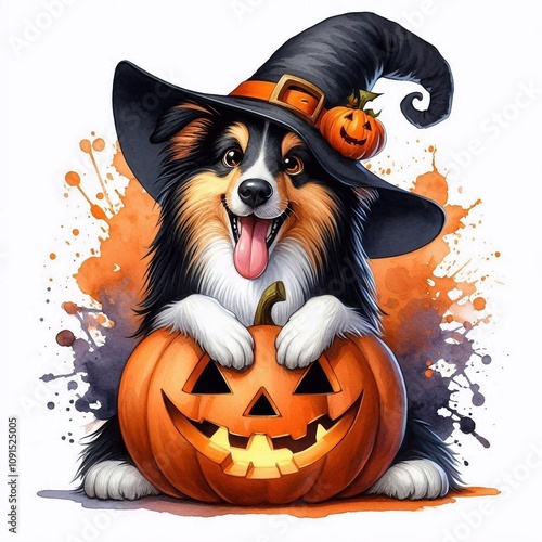 collie, dog, pet, halloween, pumpkin, skittish, cartoon, face, figure, drawing, funny