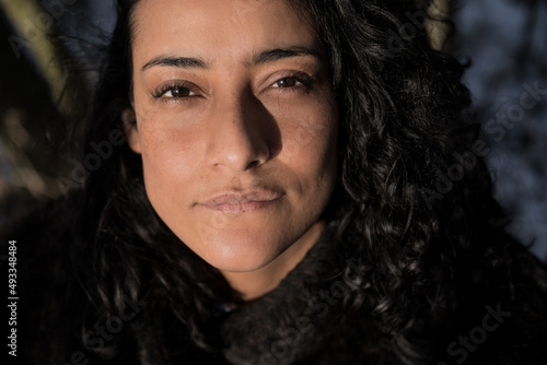 apparel, attractive, beautiful, brunette, casual attire, clothing, coat, cold, colombian, columbian, confidence, dark, eye, face, fall, fashion, freezing, fur, glove, hair, coiffure, hat, human face, jacket, lifestyle, model, nature, outdoors, outfit, overcoat, portrait, season, seasonal, serious, skin, skincare, snow, snowy, standing, tree, winter, wood, timberland