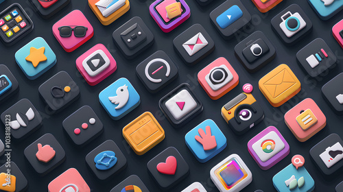 Colorful d app icons transparent background