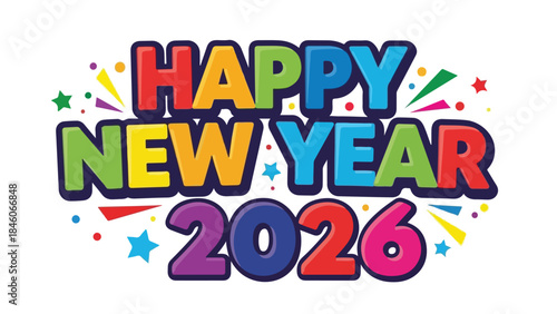 Colorful 3D typography illustration of the happy new year celebration concept with fun party letters and alphabet font design