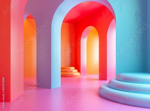 interior, design, abstract, arch, colourful, colours, background, three-dimensional, wall, modern, room, style, decoration, archway, geometry, shape, architecture, light, empty