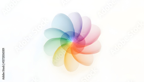Colorful Abstract Spiral Design with Overlapping Translucent Pastel Shapes on White Canvas for Modern and Dynamic Artwork