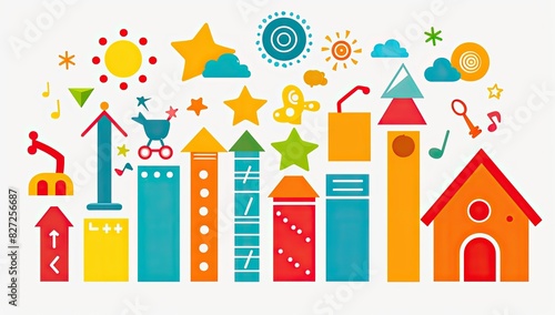 abstract, vector, building, colourful, symbol, city landscape, playful, urban, vibrant, icon, cheerful, whimsical, illustration, house, graphic, bright, artistic, fun, creative, design, modern, shape, element, star, heart, music notes, arrow, cloud, sun, happy, diverse