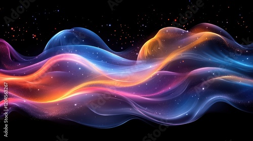 Colorful abstract waves of light flowing in a dark space, creating a sense of movement and depth