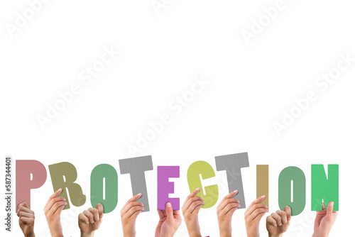 no people, man, woman, part of, defense, shielding, shelter, preservation, conservation, safeguarding, safety, security, insurance, protection, colourful, colours, alphabet, spelling, holding, hand, character, communication, concept, font, information, language, lettering, letter, signs, symbol, text, typo, typography, white, word, writing, conceptual, white background