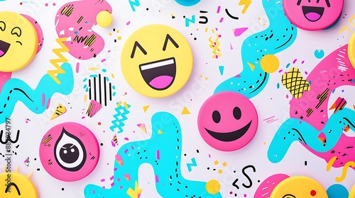 cartoon, face, happy, joy, smile, pattern, background, colourful, abstract, design, illustration, digital, art, graphic, bright, fun, whimsical, cute, adorable, playful, vibrant, high-coloured, optimistic, energetic, positive, joyful, cheerful, childish, funny, humor, expression, character, emoticon, drawing, painting