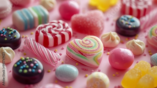 candy, sweet, dessert, colourful, bright, collection, pink, sugar, stripes, shape, favor, nubes, round, gumdrops, lollipop, chocolate, peppermint, novelty, festive, celebration, treat, confection, vibrant, sugary, decoration, party, homemade, childhood, indulgence, shop, market, display, assortment, attractive, playful, delicious, variety, fun, seasonal