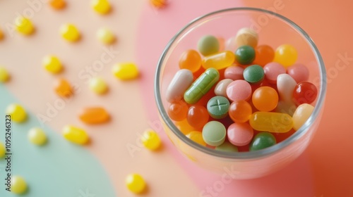 colourful, assortment, pill, glasses, bowl, pastel, background, health care, medicine, pharmaceutical, vibrant, many-coloured, medication, treatment, vitamin, supplement, variety, pattern, design, layout, arrangement, health, wellness, prescription, dosage, pill, lifestyle, abstract, colours, texture, contrast, healthy, pharmaceutical, diet, disease, drug, supplement, therapy