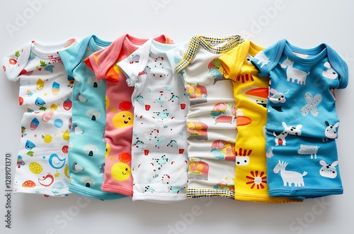 Colorful baby clothes with fun prints baby fashion and comfort white background