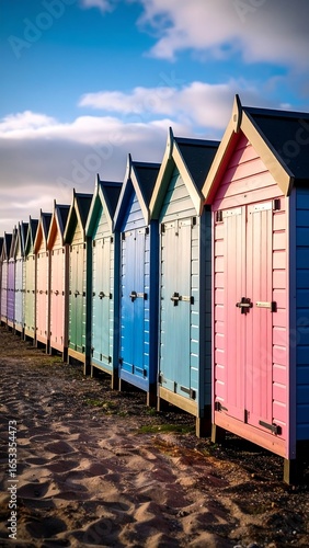 Colorful beach huts in a row