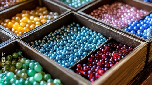 Colorful Beads in Wooden Boxes