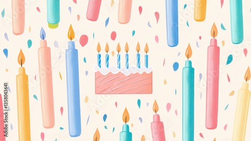candle, cake, birthday, celebration, party, festive, colours, texture, joyful, decoration, gift, dessert, sweet, happiness, event, fun, light, flames, vibrant, design, illustration, colourful, pattern, cheerful, supply, joy, greeting, season, table, bakery, homemade, children, adult, invitation, gathering, atmosphere, theme, joyous, occasion