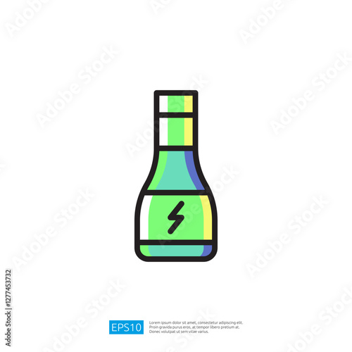 Colorful Bottle Icon for Energy-Related Liquid with Lightning Symbol Representing Electricity and Power in Vibrant Minimalist Design